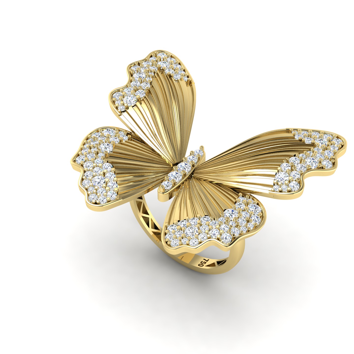 Celebre a delicadeza da natureza com esta joia imponente e refinada. O Anel Borboleta é uma obra de arte esculpida em ouro 18k, com um design robusto e detalhes esculpidas que conferem movimento e brilho à peça. As asas são realçadas por uma composição harmônica de diamantes lapidados em brilhantes em diferentes tamanhos, aplicados com precisão para criar um efeito cintilante e sofisticado.