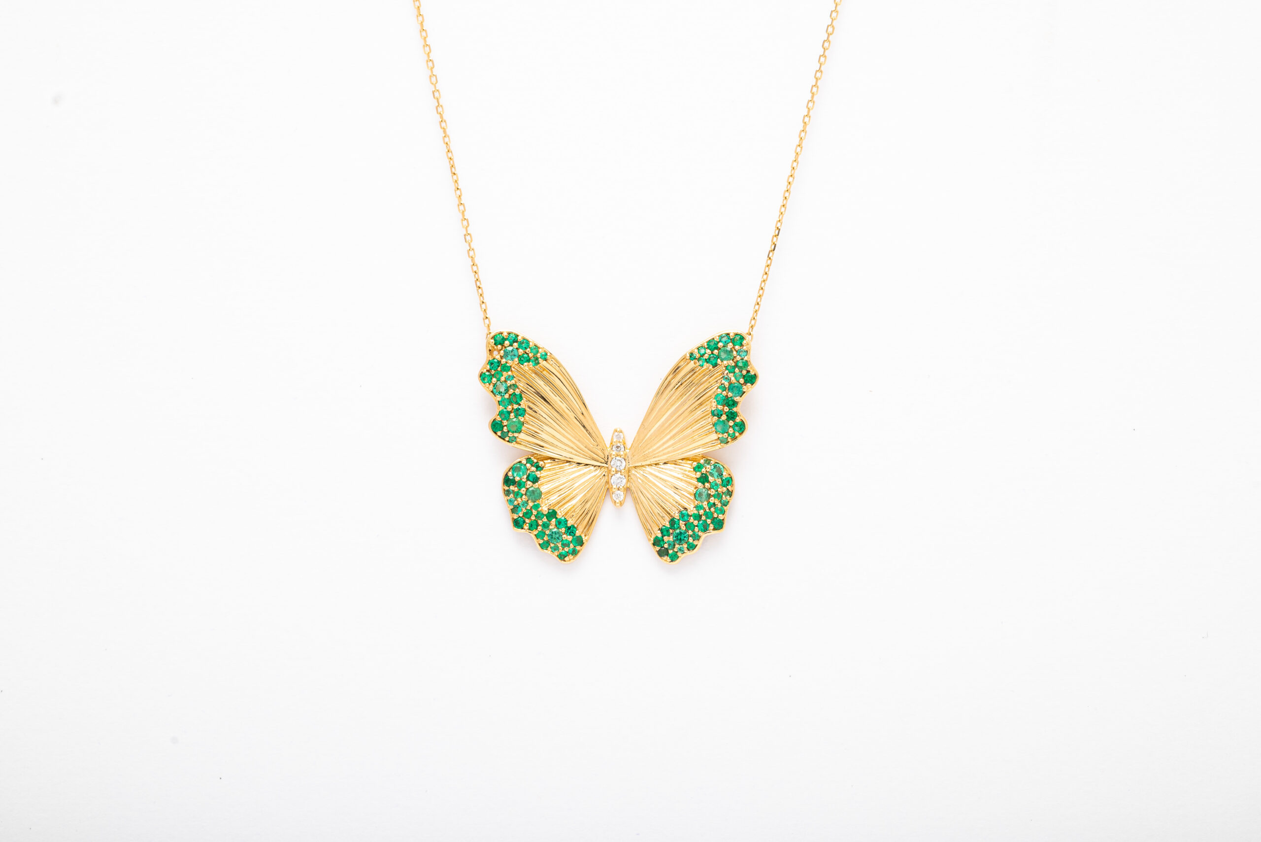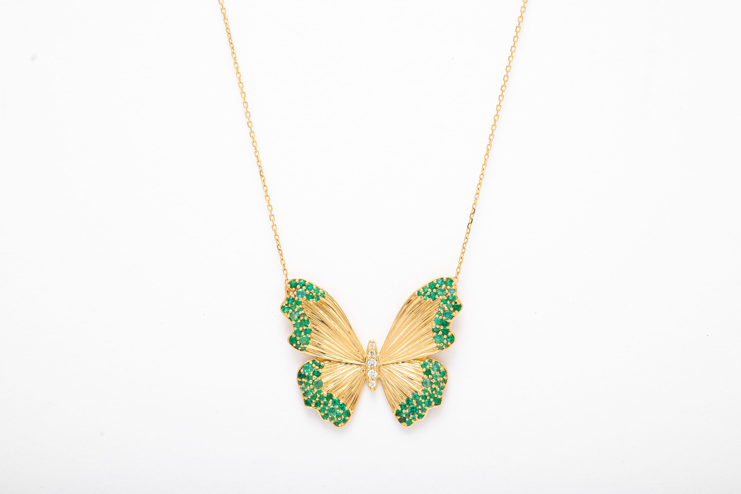 Colar Butterfly de Ouro Amarelo – Esmeraldas e Diamantes